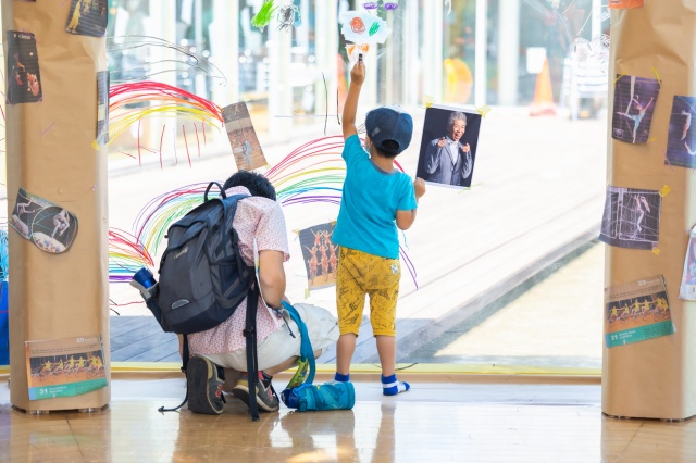 サーカスを観に来た〝ひと″や、好きな〝生き物″を自由に楽しく描いて、アトリエの大きなガラスをみんなの絵でうめつくそう!