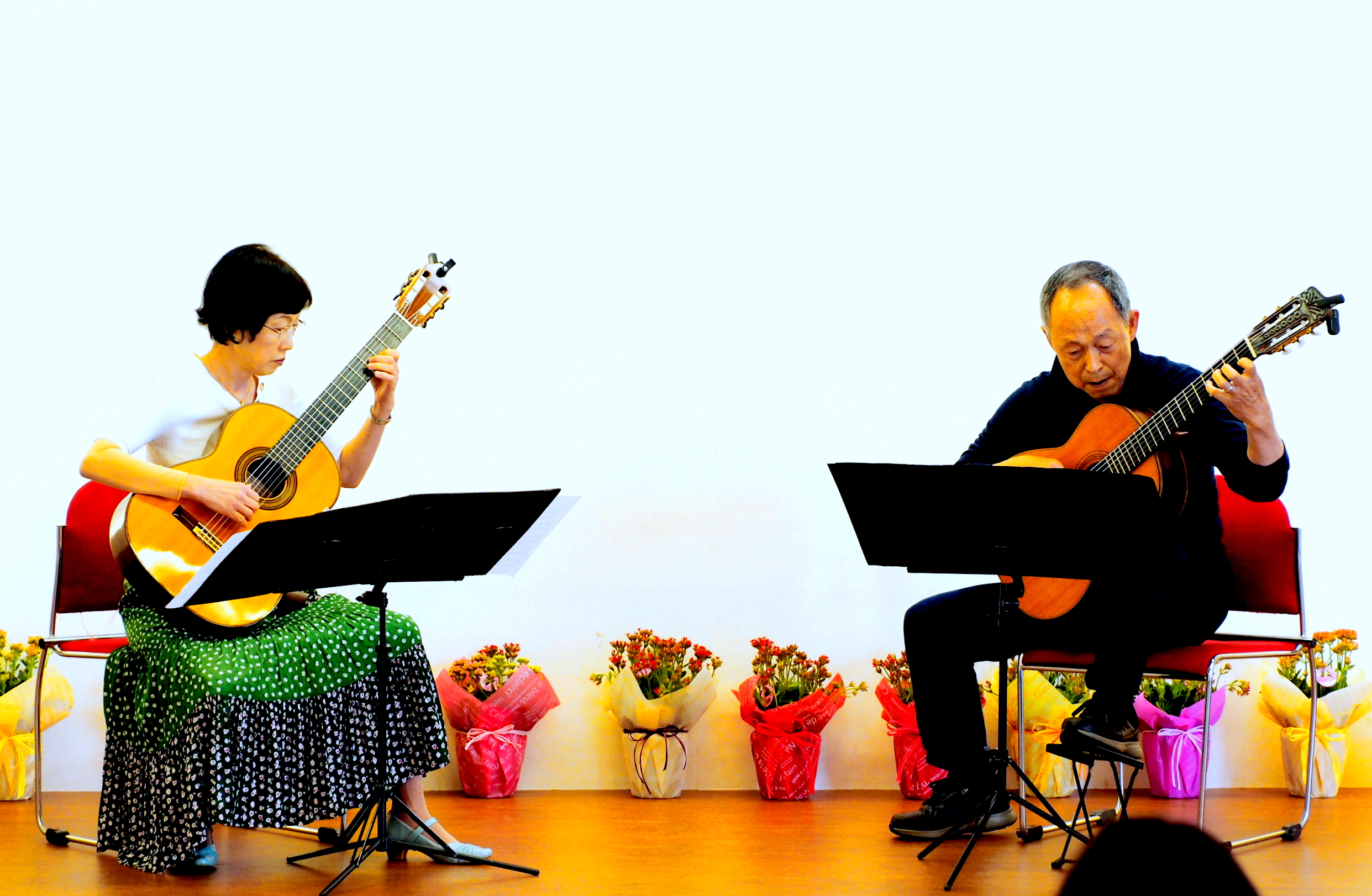 私たちは、浦和ギターアンサンブルで永年ギター合奏を楽しんで来ました。昨年のマルチホール音楽祭にも参加し合奏曲を演奏しました。5年ほど前からデュオを組み、ギター二重奏も始めました。よく知られている「禁じられた遊び」も2本の楽器で奏でると一味違ったテイストになります。今回は、クラシックに始まり、心癒される小品、スペインのグラナドスの名曲、そして、独特の哀愁が魅力の南米のミロンガをお届け致します。