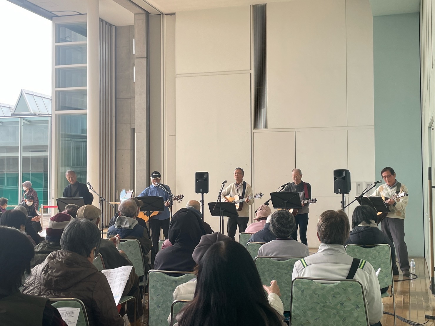 ☆演奏メンバー(写真右から) 小松澤 正彦(Gt.Vo.)、山崎 崇(Gt.Vo.)、五十嵐 博美(Gt.Vo.)、市川 秀郎(GT.Vo.)