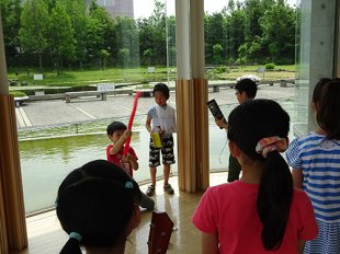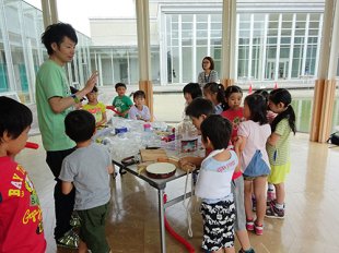 すっかり夏の陽気になったせいか、半袖で元気いっぱいの17人のこどもたちがキラリに遊びに来てくれました。