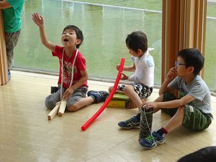 音で遊んで、外で遊んで、あっという間の2時間が終了!