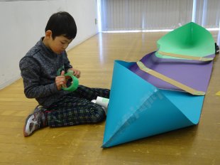 今日は大きな色紙が使える!とはりきって作り始めたのはなんと船!
