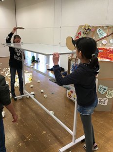 キラリふじみの多田淳之介芸術監督(TJ)と一緒に遊ぶ「こどもステーション☆キラリ」。
