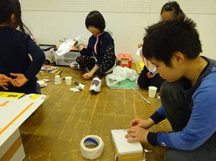沈まないよう、アルミホイルを貼って水からダンボールを守ります。