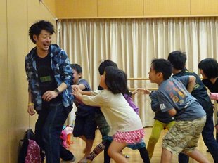 キラリふじみの多田淳之介芸術監督(TJ)と毎月遊ぶ企画「こどもステーション☆キラリ」。