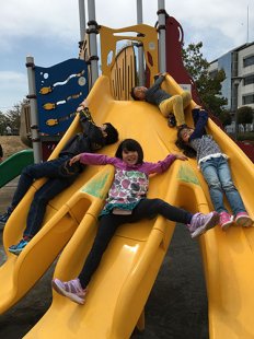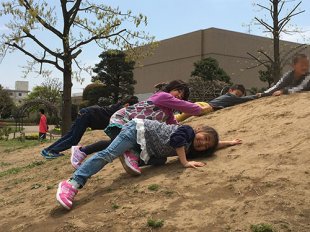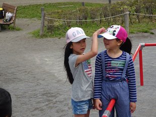 みんな初めて会った子と遊ぶのに、少し緊張気味…