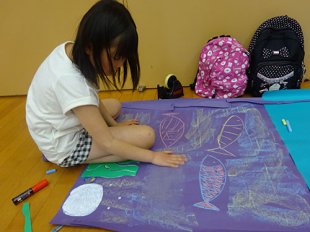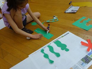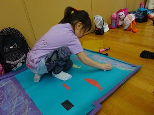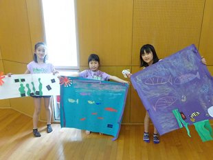 色紙や紙コップと、様々なものを駆使して色鮮やかで立体的な水族館を作ります。