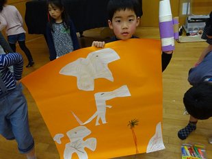 一枚の紙の上で収まる作品も、子どもたちの頭の中では壮大な物語が展開されています。