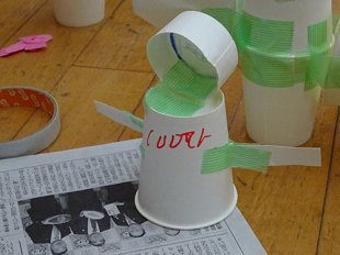 紙コップを何重にも重ねた胴体部分は頑丈で、見た目もゴールドでカッコいい!