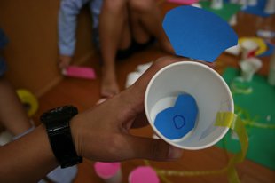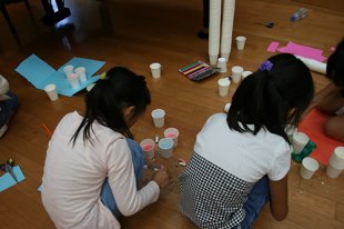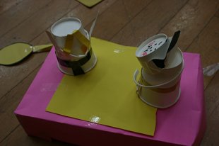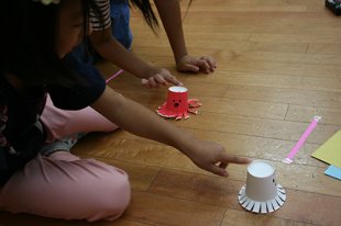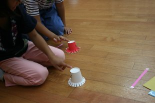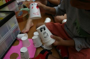 紙コップ、色画用紙、クレヨン、糸…などなど。