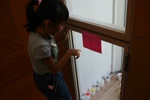 なんだか見覚えのある光景。今日も色水作り…?