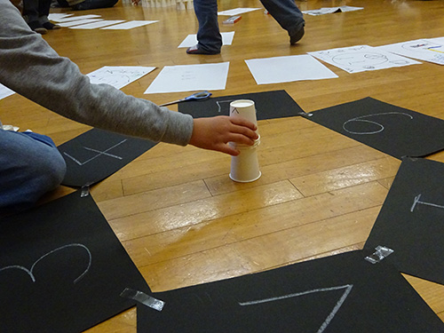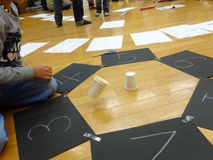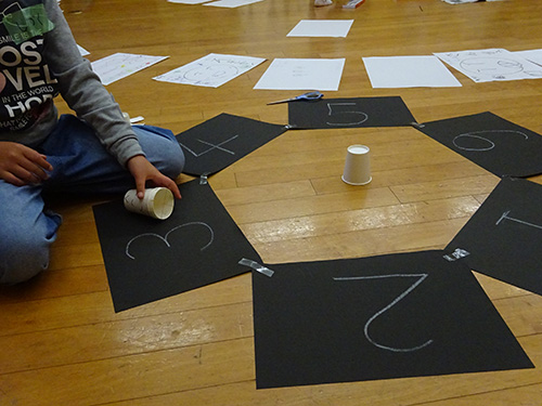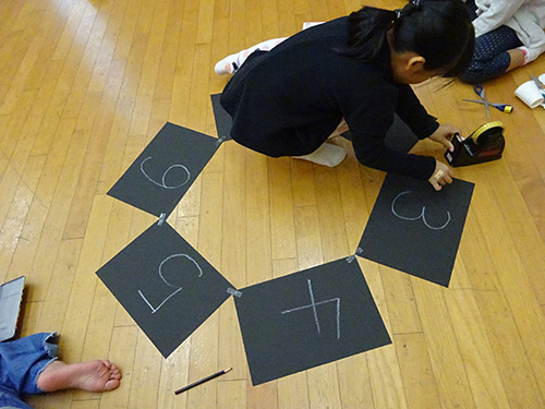 まずは数字が書かれた紙を丸い形に並べます。