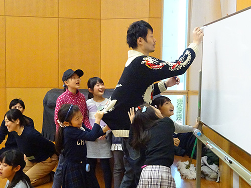 キラリふじみの多田淳之介芸術監督(TJ)と一緒に遊ぶ『こどもステーション☆キラリ』。
