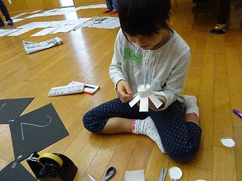 見つけたり、つくったりしてお題をクリアするこどもたち。