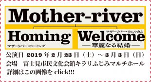 7年前から始まった今シリーズ。一作目の『Mother-river Homing(マザーリバーホーミング)』は4度目の上演、二作目の『Mother-river Welcome~華麗なる結婚~(マザーリバーウェルカム)』は2度目の上演と、何度も繰り返されています。キラリ☆ふじみ(以下、キラリ)といえばこのシリーズ、とも言える作品となってきました。