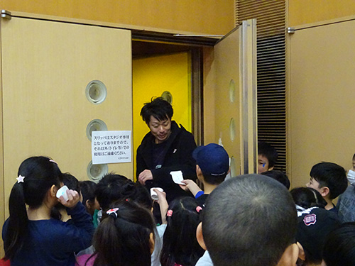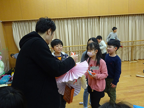 TJへのお渡し会が終わると、ふと一人の子がTJ、そしてキラリふじみの職員へ紙袋を配布。